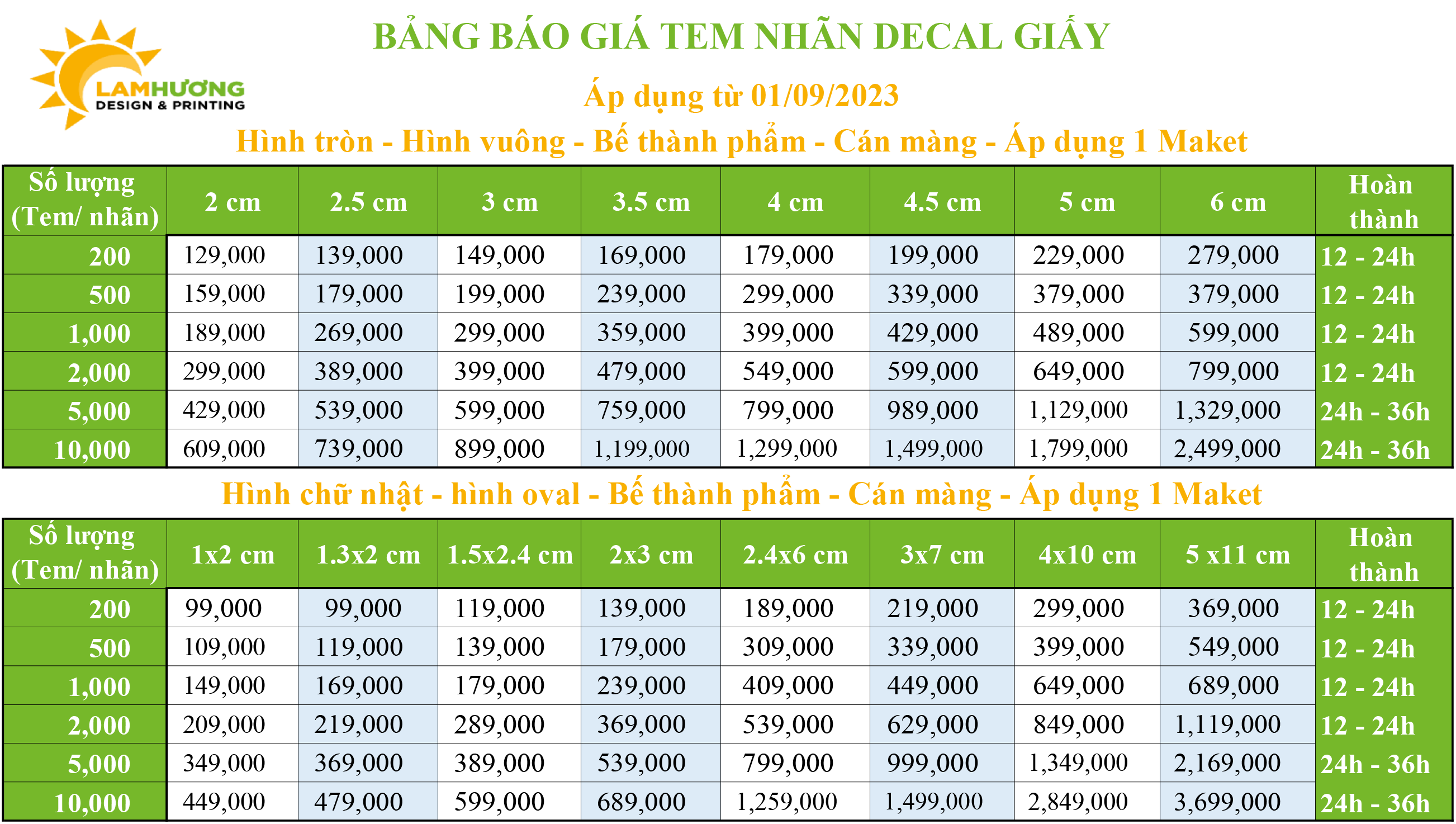 Bảng giá In Tem Nhãn Decal các loại tại In Ấn Bảo Hùng